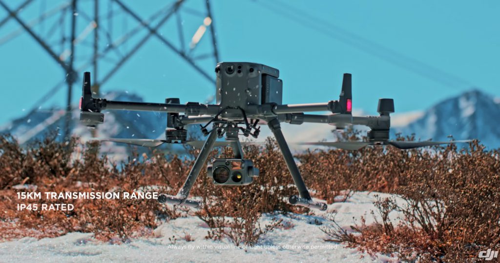 - Specjalistyczne drony termowizyjne (np. DJI Matrice 30T) – poza powyższym sprzętem, Policja testuje i wprowadza także nieco mniejsze platformy nowej generacji, które zaprojektowano z myślą o misjach poszukiwawczo-ratowniczych i działaniach specjalnych. Przykładem jest DJI Matrice 30T – kompaktowy, ale bardzo zaawansowany dron, wyposażony fabrycznie w wysokiej jakości kamerę termowizyjną oraz kamerę dzienną z przybliżeniem. Model ten może wzbijać się na pułap nawet 7000 m n.p.m. (choć oczywiście w praktyce operuje niżej) i jest odporny na skrajne temperatury oraz opady. Dzięki składanej konstrukcji jest łatwiejszy w transporcie niż duży Matrice 300, a jednocześnie oferuje zbliżone możliwości w zakresie obserwacji. Drony takie sprawdzają się zarówno w akcjach ratunkowych, jak i typowo policyjnych operacjach specjalnych, zwłaszcza tam, gdzie warunki są trudne (np. góry, burza, zadymienie terenu).